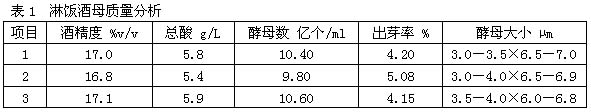 從糯米淋飯酒中挑選酒醅發(fā)酵正常、口味老嫩適中、爽口無異雜氣味,且養(yǎng)醅成熟后,酒精在16%-17%、酸度適中的淋飯酒母,淋飯酒母質(zhì)量分析如表1。取500ml燒杯即可。(見表1)