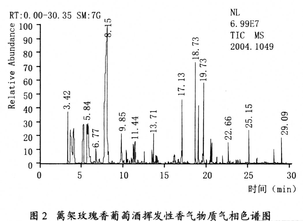 &nbs文章來源華夏酒報p; 香氣成分是構成葡萄酒品質的重要因素,決定著葡萄酒的風味和典型性,除受葡萄品種、地理條件、加工工藝等因素的影響外,還受栽培架式(葉幕)的影響。在我國,釀酒葡萄的栽培主要以籬架和棚架為主。玫瑰香(Vitis vinifera cv,Muscat Hamburg)是我國主栽以釀制干白、干紅、桃紅葡萄酒的傳統優良富香品種,尤其釀制的葡萄酒具有獨特的果香和酒香。本試驗利用固相微萃取——氣質色譜法測定了籬架和棚架栽培條件下玫瑰香葡萄酒中的主要揮發性香氣成分,為用玫瑰香葡萄釀酒提供理論參考。