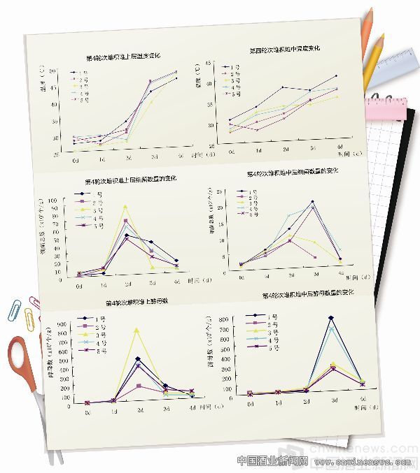 古貝春醬香古貝元生產車間二車間第2輪次、第3輪次、第4輪次、第5輪次堆積酒醅;入窖發酵酒醅溫度的記錄和對酒醅微生物的分析資料。