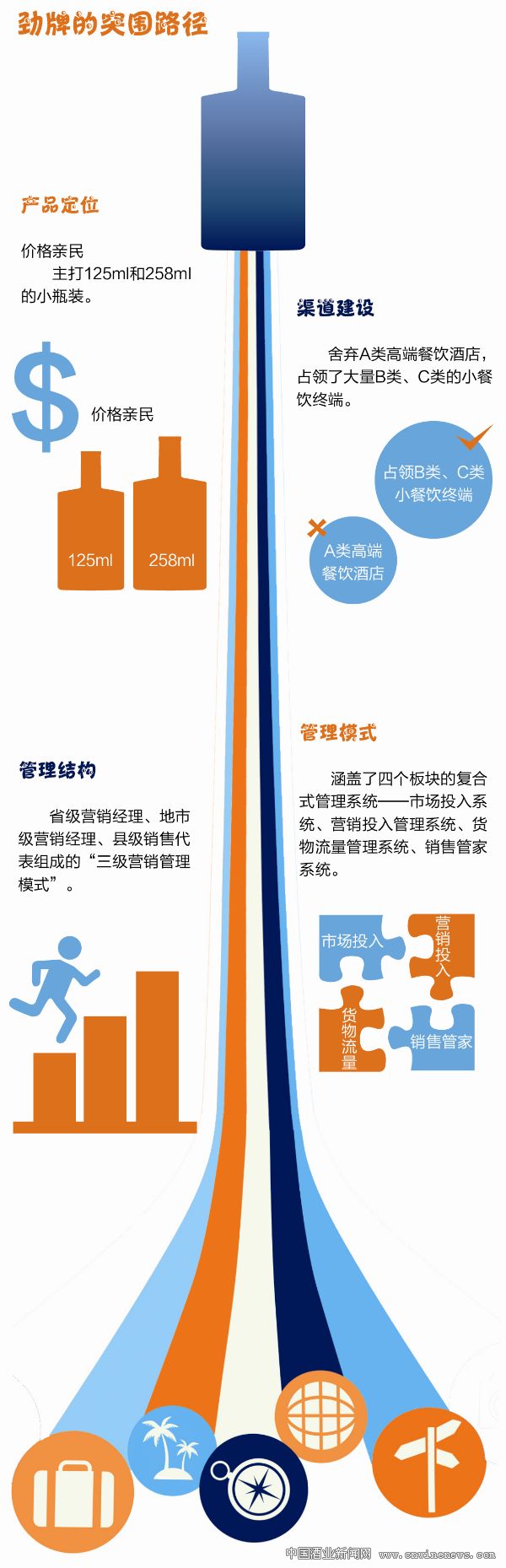 對渠道的管理和效率,很大程度上決定了快消品的市場生命力,在這方面,勁牌有一套縝密的營銷管理和信息化系統。
