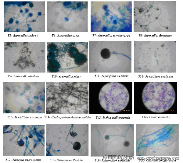 綜合分析免培養(yǎng)法和培養(yǎng)法檢測黃酒麥曲中真菌的結(jié)果,初步認為麥曲中的主要真菌為:傘枝犁頭霉、米曲霉、煙曲霉、黑曲霉、小孢根霉、微小根毛霉、季氏畢赤氏酵母、異常畢赤酵母、米根霉、釀酒酵母、熱帶假絲酵母文章來源華夏酒報、構(gòu)巢裸孢殼及葡萄牙念珠菌。