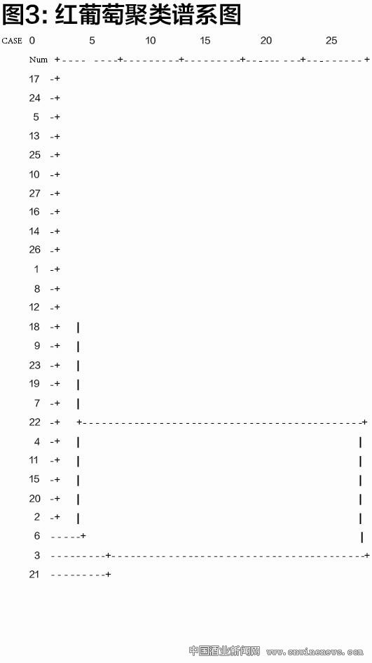 依據附件2中釀酒葡萄的各項理化指標,運用SPSS 17.0軟件繪制出紅葡萄的聚類譜系圖,如圖3所示。