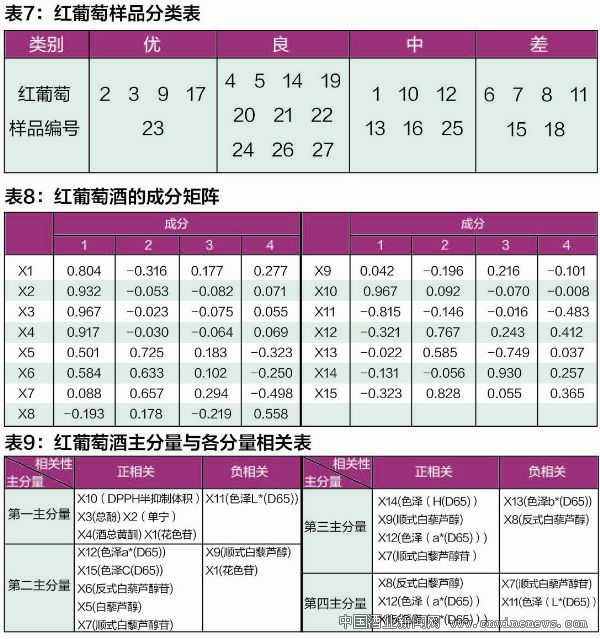 最后,使用累計貢獻率函數,說明了芳香物質對紅葡萄酒質量的影響起著重要作用,不能僅通過釀酒葡萄和葡萄酒的理化指標評價葡萄酒的質量。