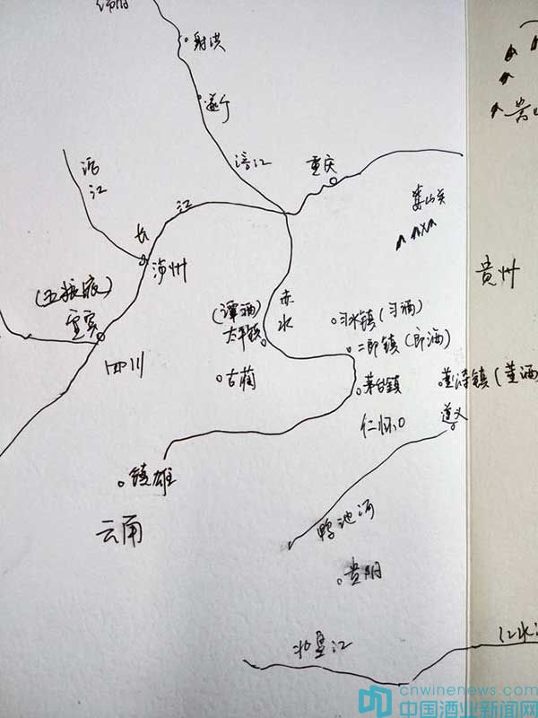 長江從上游的金沙江段從西南向東北經過橫斷山脈,大小涼山之后一路開始進入四川盆地,在宜賓匯入岷江,瀘州匯入沱江之后,赤水河與之在進入重慶界交匯。赤水河上游有貴州遵義懷仁縣茅臺鎮的茅臺,下游有四川瀘州的瀘州老窖,中間有二郎鎮的郎酒,習水鎮的習酒。發源于滇北,沿川黔交界蜿蜒向北注入長江的赤水河簡直是一條酒河。