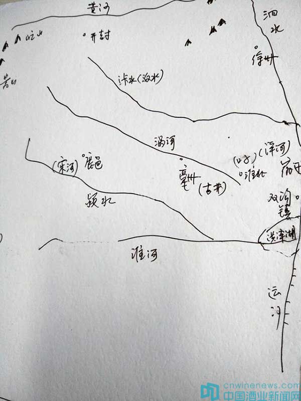 在中國,可以與之相媲美的白酒地帶還有一個,那就是黃淮之間的蘇皖豫地區。自西向東先說一說名字:豫東北鹿邑的宋河,皖北渦河畔亳州的古井,淮北的口子窖,蘇北泗水畔宿遷的洋河,洪澤湖畔雙溝鎮的雙溝等。黃淮之間,自西北向東南,汝河、潁河、濉河、渦河、汴河(汴水)、泗水等如梳子狀滋潤著豫皖蘇北大地,最后入洪澤湖、淮河東流入海。
