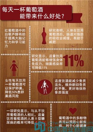 在生活中,葡萄酒代表著高尚和品味,也標(biāo)志著一種生活態(tài)度。但葡萄酒的意義絕不僅此,隨著科學(xué)的發(fā)展,科學(xué)家在葡萄酒中發(fā)現(xiàn)了越來越多有益人體健康的化學(xué)成分,如白蘆藜醇和各種酚類物質(zhì)。許多科學(xué)實驗都表明,適量飲酒在某種程度上可以緩解一些疾病的癥狀或降低某些疾病的發(fā)病率。那么,每天飲用一杯葡萄酒,能給我們帶來什么好處呢?一起來見識葡萄酒的魔力!
