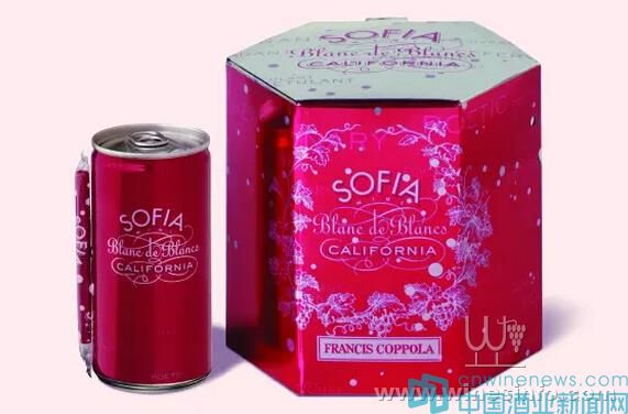 在葡萄酒電商平臺wine.com和亞馬遜上都能發現罐裝葡萄酒種類的增多,另外在網絡上還能找到很多盤點今年熱銷罐裝葡萄酒的文章,像是Union Wine 的Underwood Rosé Bubbles和Barefoot的清爽罐裝氣泡酒,也包括Sofia Mini Blanc de Blanc,這款桃紅色外包裝、口味像香檳的葡萄酒來自著名電影《教父》的導演Francis Ford Coppola開的葡萄酒公司,面市已經有12年了,品牌是以科波拉的女兒Sofia的名字來命名,它被認為是首款進入美國主流市場的罐裝葡萄酒,一般4罐的售價要20美元。