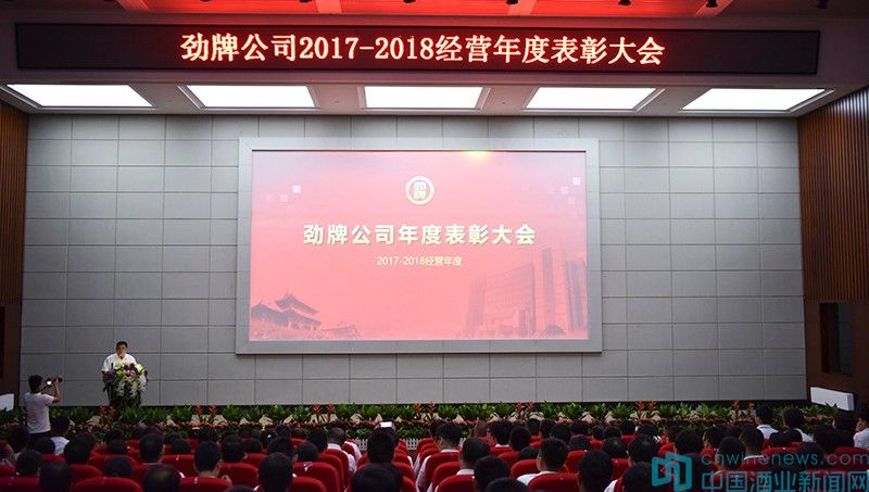 副總裁夏振千宣讀了2017-2018經營年度表彰決定及獲獎名單。其中,勁牌酒廠等3個單位被授予“先進單位”稱號;組織人事部等4個部門被授予“先進部門”稱號;保健酒事業部保健酒內容策劃部等10個團隊獲“優秀團隊”稱號;勁牌酒廠包裝一車間03班等24個班組被授予“先進班組”稱號;原白酒技術部蔣祖金榮獲“特殊貢獻獎”、勁牌酒廠方向西獲“勁牌工匠”榮譽、杜曼等10人獲“工作標兵”稱號;鄭傳營等103人被授予“先進個人”稱號;姜恒志等10人獲“改善之星”榮譽。