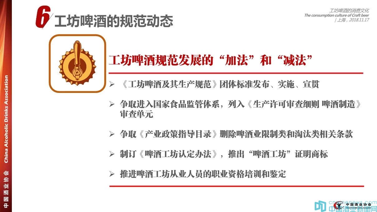 此次論壇上,中國(guó)酒業(yè)協(xié)會(huì)常務(wù)副秘書長(zhǎng)兼啤酒分會(huì)秘書長(zhǎng)何勇就工坊啤酒的消費(fèi)文化進(jìn)行了深入淺出的剖析,得到了現(xiàn)場(chǎng)觀眾的高度認(rèn)同。他指出,中國(guó)酒業(yè)協(xié)會(huì)長(zhǎng)期致力于建立工坊啤酒業(yè)的規(guī)范化,并積極在相關(guān)政策法規(guī)中為工坊啤酒爭(zhēng)取最大的產(chǎn)業(yè)發(fā)展支持和合法地位。這也就是在不斷完善行業(yè)規(guī)范的基礎(chǔ)上,對(duì)工坊啤酒業(yè)的規(guī)范發(fā)展進(jìn)行“加法”和“減法”的修正。如制定、發(fā)布、實(shí)施和宣貫《工坊啤酒及其生產(chǎn)規(guī)范》團(tuán)體標(biāo)準(zhǔn);推薦工坊啤酒納入國(guó)家食品監(jiān)管體系;爭(zhēng)取工坊啤酒生產(chǎn)許可審查細(xì)則審查單元;建議《產(chǎn)業(yè)政策指導(dǎo)目錄》刪除啤酒業(yè)限制類和淘汰類相關(guān)條款;制訂《啤酒工坊認(rèn)定辦法》,推出“啤酒工坊”證明商標(biāo);推進(jìn)啤酒工坊從業(yè)人員的職業(yè)資格培訓(xùn)和鑒定等措施,以政策法規(guī)為指導(dǎo)基礎(chǔ),以優(yōu)勝劣汰為工作原則,大力推進(jìn)工坊啤酒產(chǎn)業(yè)發(fā)展,為中國(guó)啤酒行業(yè)提供新的增長(zhǎng)點(diǎn)。
