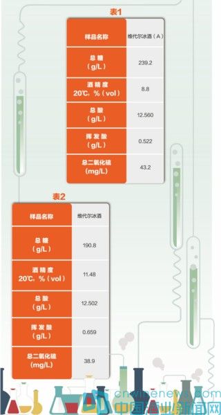 以10KL終止發酵的冰酒(A)為例,化驗分析數據見表1。