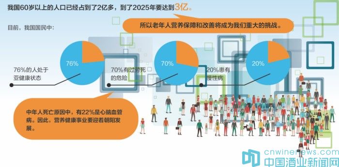 “目前,我國國民中,76%的人處于亞健康狀態,70%有過勞死的危險,20%患有慢性病,占全部死亡原因的86%。中年人死亡原因中,有22%是心腦血管病。”由此,中國工程院院士、中國進出口檢驗檢疫首席科學家龐國芳表示,營養健康事業要迎著朝陽發展。