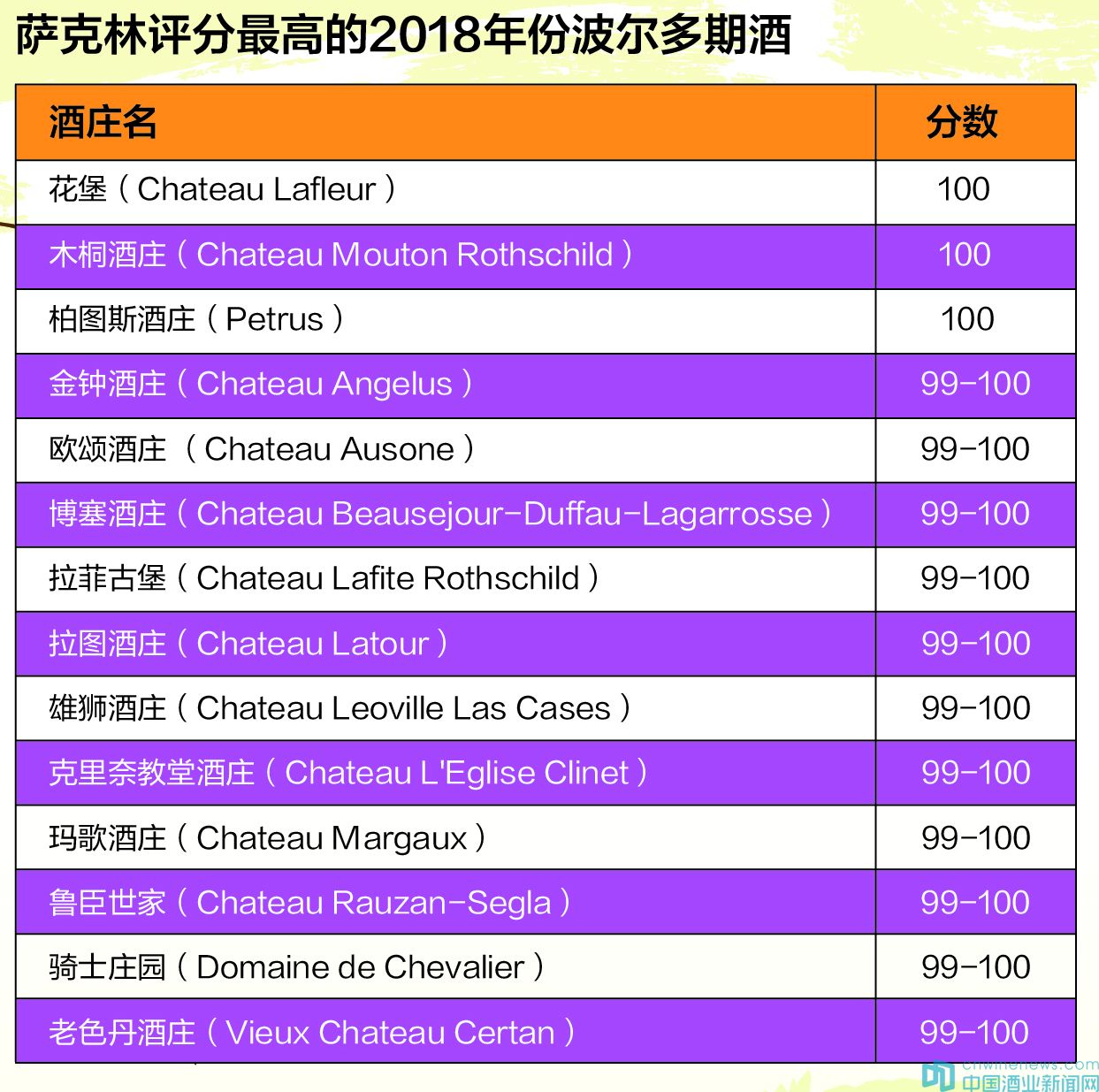 2018年是如此特別的一年,出產的葡萄酒非常迷人。我已經為三款葡萄酒給出了完美的100分評分:花堡(Lafleur)、柏圖斯和木桐(Mouton-Rothschild)。這些令人嘆為觀止的葡萄酒,展現了令人難以置信的香氣和復雜的深度,以及偉大的結構感。另外,還有10款葡萄酒裝瓶后也有望獲得100分。