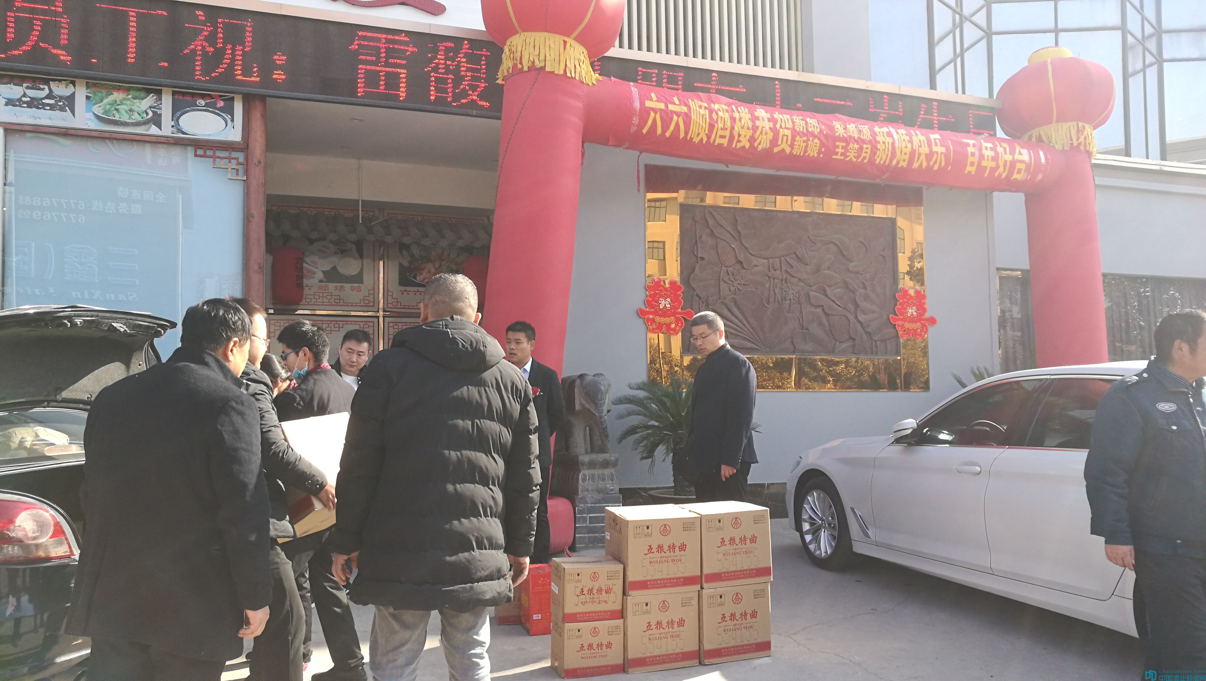 在南陽市區仲景路,剛到五糧特曲核心終端店寶森名煙名酒行門口,就碰上負責人潘蘭準備外出為婚宴活動送酒。潘蘭告訴記者,當天有一對新人結婚,新郎指定五糧特曲為婚宴用酒,兩天需要五糧特曲15箱。記者跟隨潘蘭來到六六順酒店婚宴現場,潘蘭向新郎贈送2瓶五糧特曲,并送上新婚的祝福。新郎張先生告訴記者,五糧特曲品牌好、喜慶、宣傳很到位,他對這種服務很滿意。