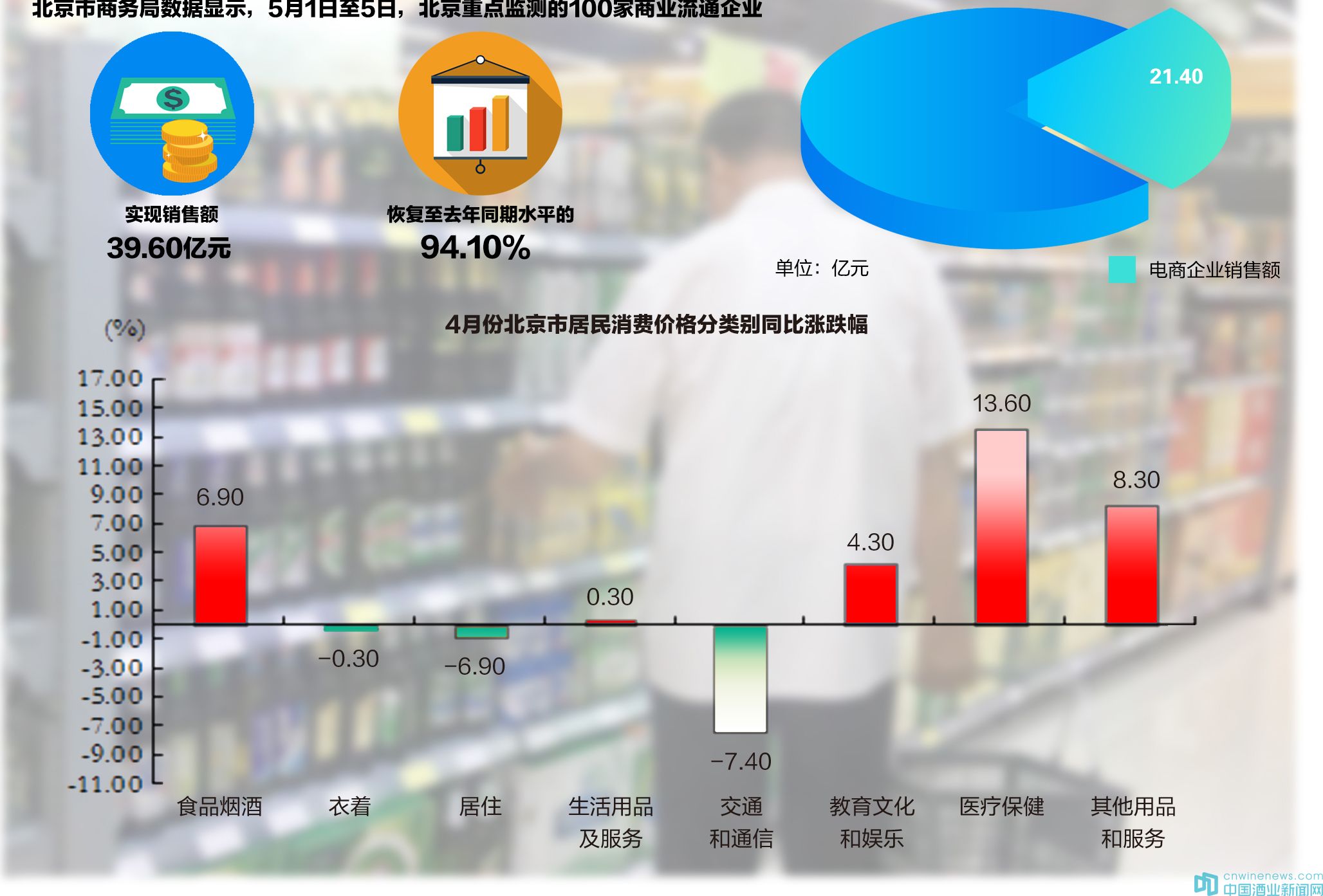 北京市商務(wù)局數(shù)據(jù)顯示,5月1日至5日,北京重點監(jiān)測的100家商業(yè)流通企業(yè)實現(xiàn)銷售額39.6億元,恢復(fù)至去年同期水平的94.1%,其中直播帶貨拉動線上銷售保持快速增長,重點監(jiān)測的電商企業(yè)銷售額21.4億元。