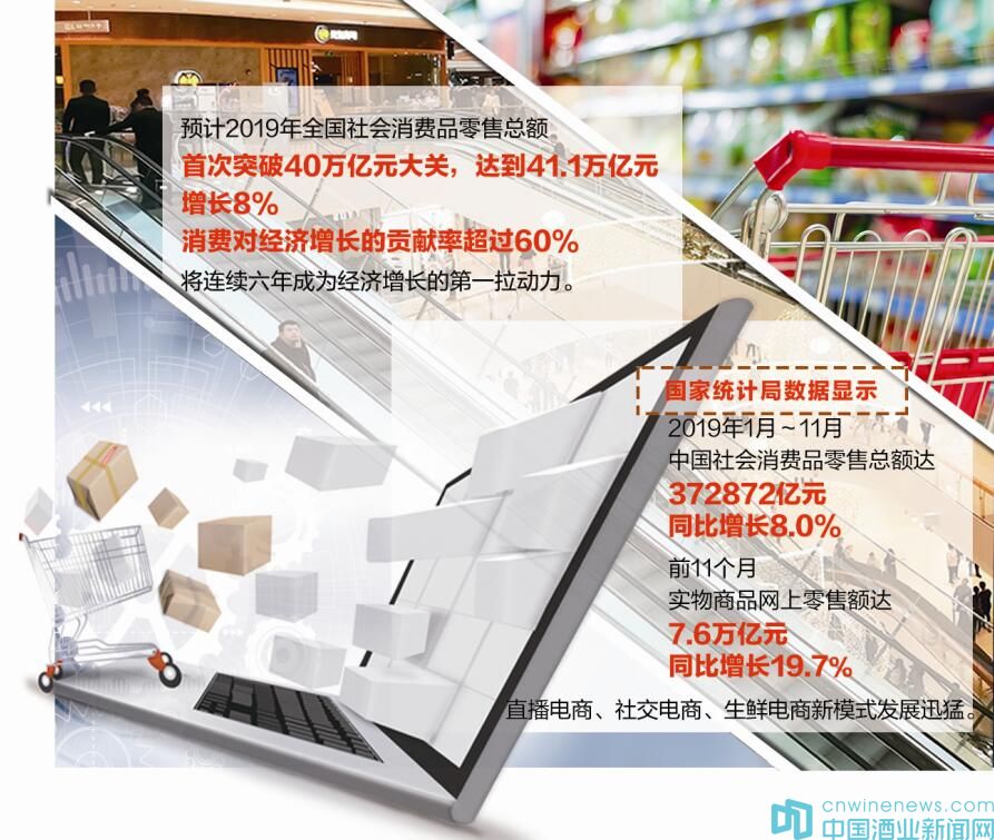 通過數(shù)據(jù)分析,2019年消費(fèi)市場運(yùn)行總體平穩(wěn),平穩(wěn)趨緩,穩(wěn)中有進(jìn)。商務(wù)部市場運(yùn)行司副司長王斌在2019年12月30日召開的2019年全國商務(wù)工作會議媒體吹風(fēng)會上表示,預(yù)計2019年全國社會消費(fèi)品零售總額將首次突破40萬億元大關(guān),達(dá)到41.1萬億元,比上年增長8%,消費(fèi)對經(jīng)濟(jì)增長的貢獻(xiàn)率超過60%,將連續(xù)六年成為經(jīng)濟(jì)增長的第一拉動力。2019年我國消費(fèi)市場運(yùn)行總體平穩(wěn),消費(fèi)規(guī)模不斷擴(kuò)大,結(jié)構(gòu)持續(xù)優(yōu)化,模式不斷創(chuàng)新,消費(fèi)對經(jīng)濟(jì)增長的基礎(chǔ)性作用進(jìn)一步鞏固。