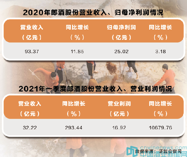2020年郎酒實現營收93.37億元,同比增長11.85%。實現歸母凈利潤25.02億元,與2019年的24.25億元相比,同比增長3.18%。