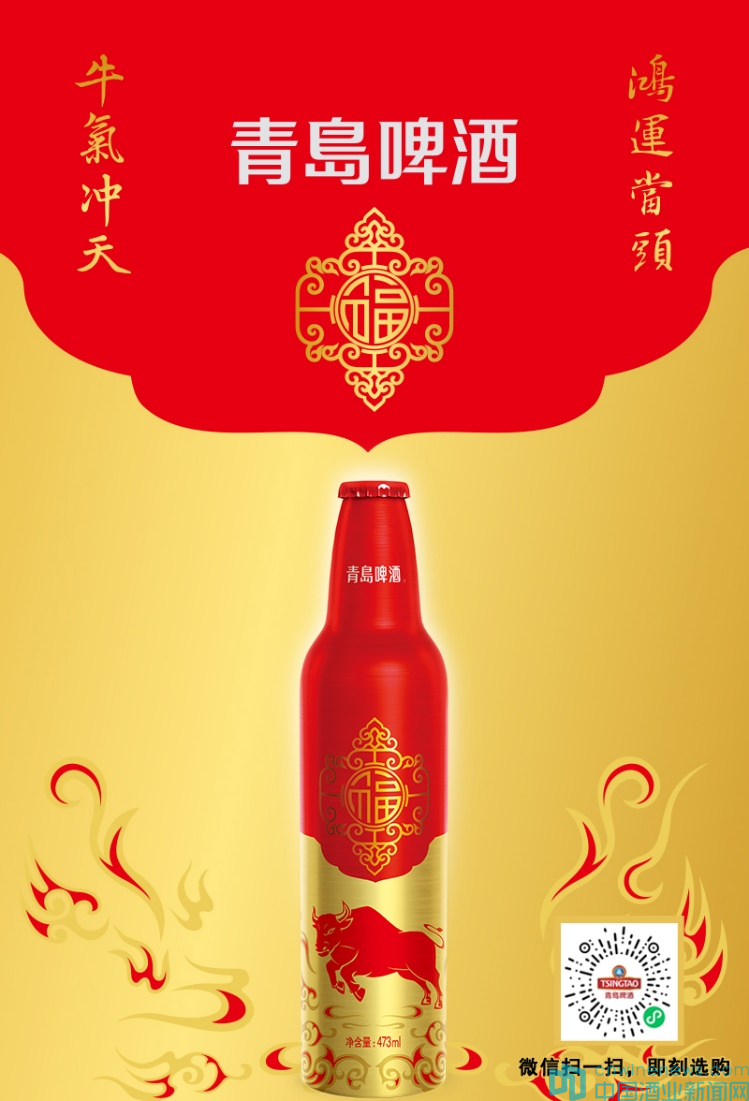 青島啤酒最新推出的牛年版鴻運當頭產品,不僅將中國傳統喜慶元素與極具現代風格的鋁瓶相結合,并把“中國牛”的形象“犇”上瓶身,“材”貌雙全自帶節日喜慶氣氛,自然當仁不讓帶上C位光環。