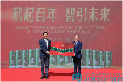 當天上午,“潮起百年 智引未來——青島啤酒廠榮膺全球啤酒飲料行業首家‘燈塔工廠’主題活動暨‘青島啤酒冬奧冰雪罐’定制項目啟動活動”舉行?;顒蝇F場,“燈塔工廠”為北京2022年冬奧會量身定制的“青島啤酒冬奧冰雪罐”讓人愛不釋手。