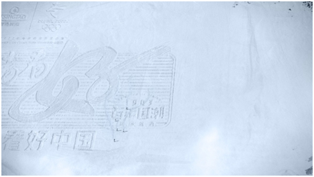 這幅宣言長200米,寬80米,從高空看下去,右邊是一個書法體的巨型“好”字,和旁邊兩小字組成“請看好”,左邊是具有中國特色的旗袍女郎形象,下面小字寫著“讓世界看好中國”。