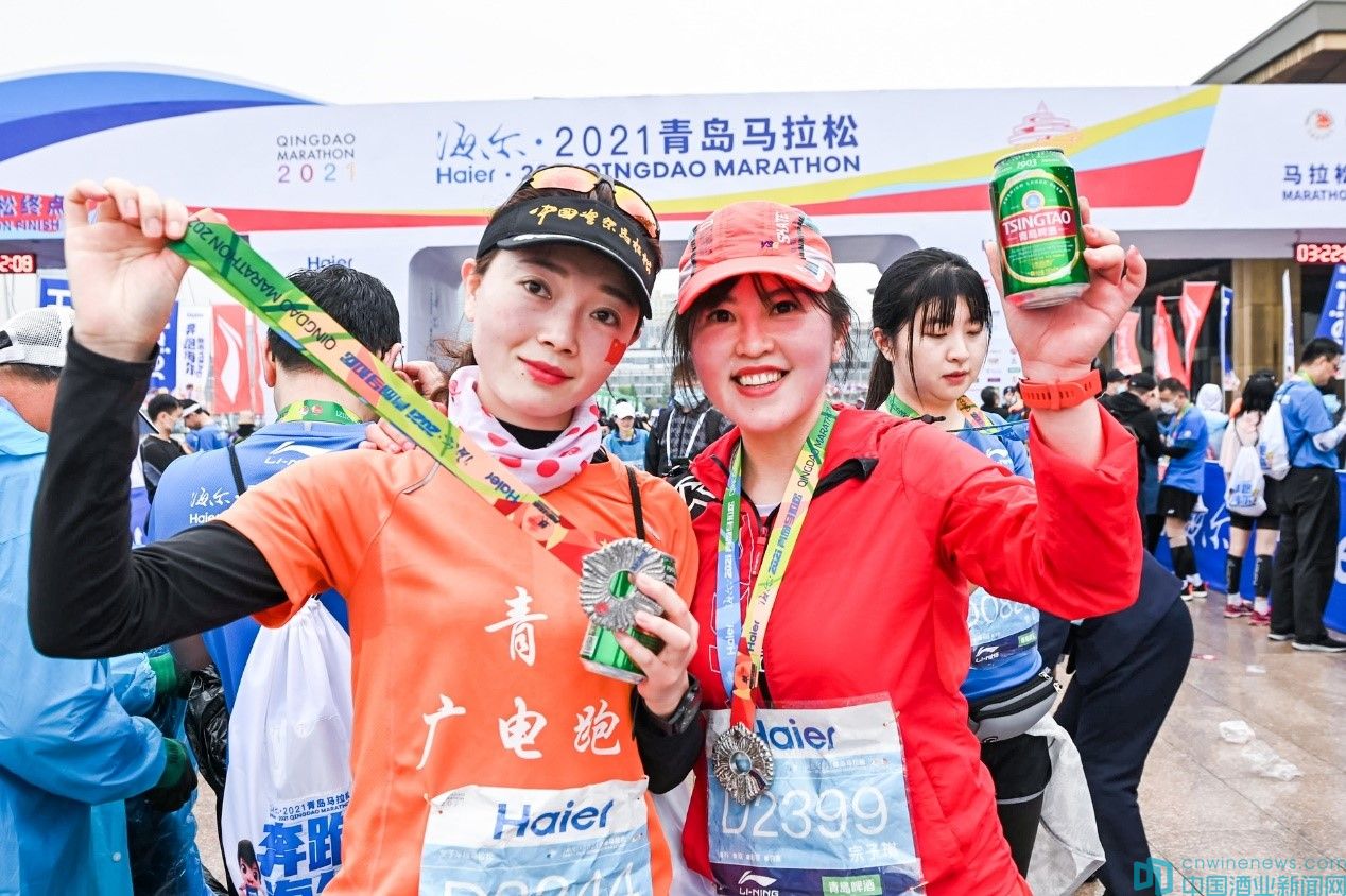 賽場終點,“砰”然開啟一瓶好酒舉杯歡慶,是馬拉松參賽者的榮耀瞬間。“我在開跑前,就和跑友們設計好了,沖線之后要親手開啟一瓶青島啤酒,分享勝利的喜悅。”來自北京的馬拉松選手張揚說道,“特別有成就感,我永遠記得這個瞬間。”