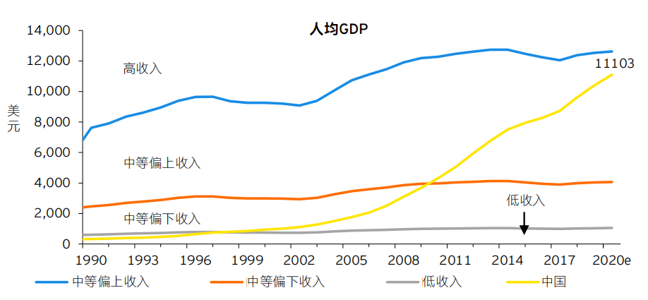 2020年,中國人均GDP已經超過1萬美元,未來五年,中國將躋身高收入國家之列,國際經驗表明,人均GDP3000美元至1萬美元是消費升級的關鍵加速期。