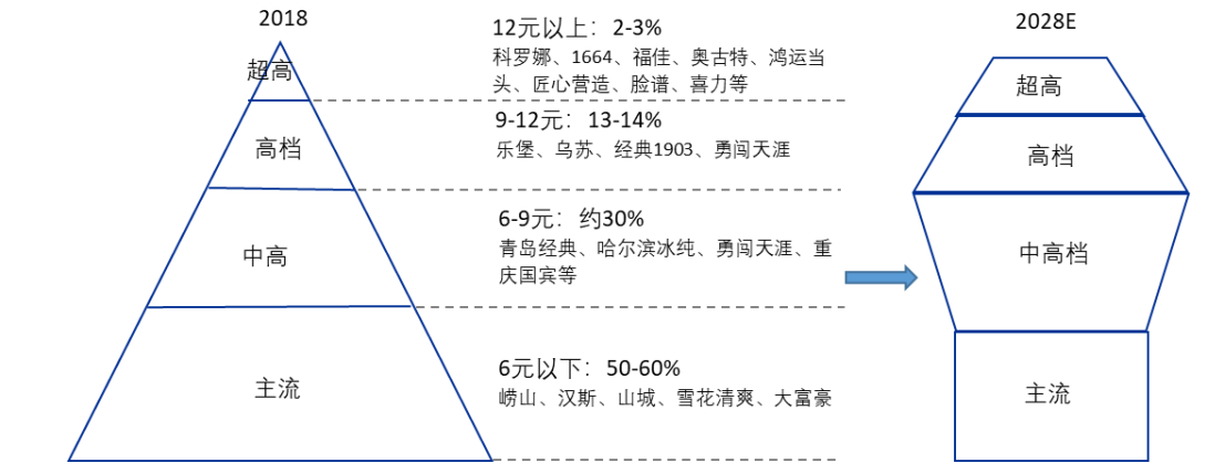 行業進入存量競爭階段,量減價增的高端化進程是行業擴容的核心推動力,也會進一步強
