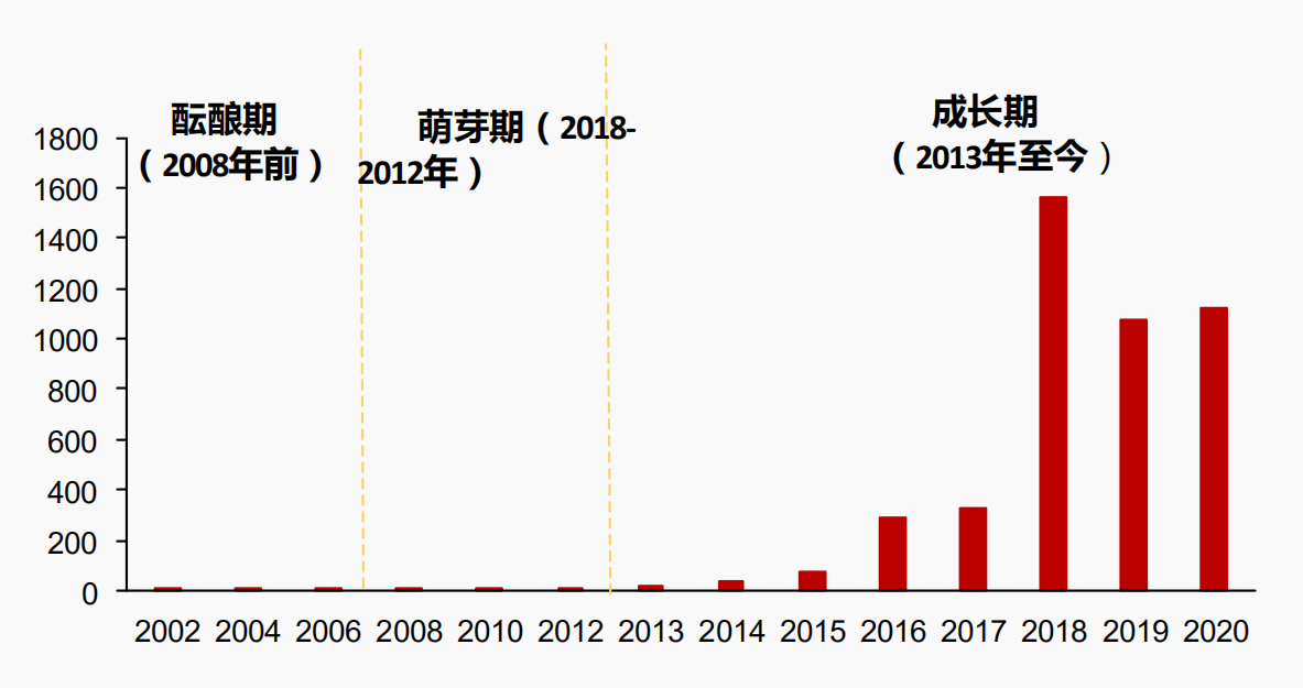 2008 年中國第一家真正的精釀啤酒釀造企業高大師啤酒工廠成立,隨后以豐收精釀、拳擊貓為代表的第一批精釀品牌出現,并在一線城市逐步擴張。此時的精釀啤酒產業規模較小,品牌獨立,市場滲透率低,消費群體多集中于熟悉精釀文化的小眾圈層。