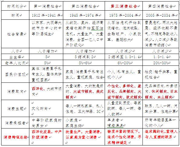 借鑒鄰國日本的四次消費社會的特征對比,我國當前消費社會階段可類比日本第三消費社會,并部分呈現第四消費社會的部分特征,比如為知識服務付費、名創優品的崛起等現象。第三消費社會的主力消費人群成長于物質較為充沛的第二消費社會,其更加追求個性化消費、尋求精神滿足;