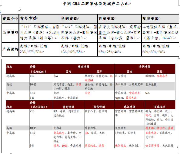 2020年CR5占比超過73%,話語權由市場端向龍頭企業轉移,在高端啤酒領域百威占