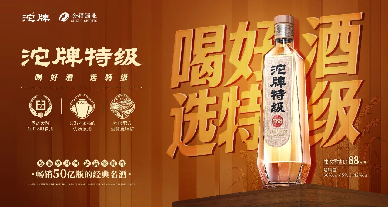 今年春糖期間,舍得酒、沱牌酒兩大品牌共同亮相。沱牌酒Slogan也正式更新為“暢銷50億瓶的經(jīng)典名酒”,同時(shí),以大眾耳熟能詳?shù)摹坝朴茪q月酒,滴滴沱牌情”為背書(shū)。