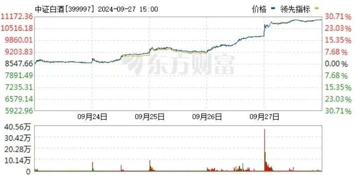 9月24日至9月27日下午3點,中證白酒板塊價格變化(數據來源:東方財富網)