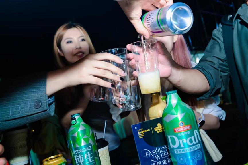 一直走在“舌尖時尚”前沿的青島啤酒,不僅是青島最具代表性、最具體驗感的時尚元素之一,也是這場大秀的時尚搭子:隨處可見的青啤綠清新可愛,LED屏幕上的青島啤酒時尚大氣,或地面發光或立體的青啤logo無處不在,更不用說吧桌上的青啤大家族,不同產品承載不同的時尚元素,好喝又好看!連夜空中的無人機都上演著“青島與世界干杯”的精彩。