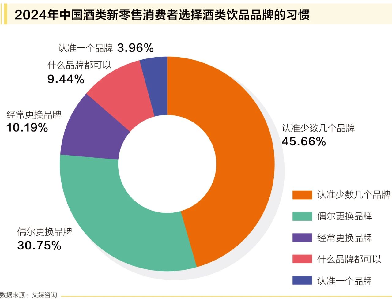 在選擇酒類飲品品牌的習(xí)慣方面,調(diào)查顯示,45.66%的消費(fèi)者認(rèn)準(zhǔn)少數(shù)幾個(gè)品牌,30.75%的消費(fèi)者偶爾更換品牌,10.19%的消費(fèi)者經(jīng)常更換品牌,也有9.44%的消費(fèi)者表示什么品牌都可以。認(rèn)準(zhǔn)一個(gè)品牌的消費(fèi)者占比最少,僅為3.96%。