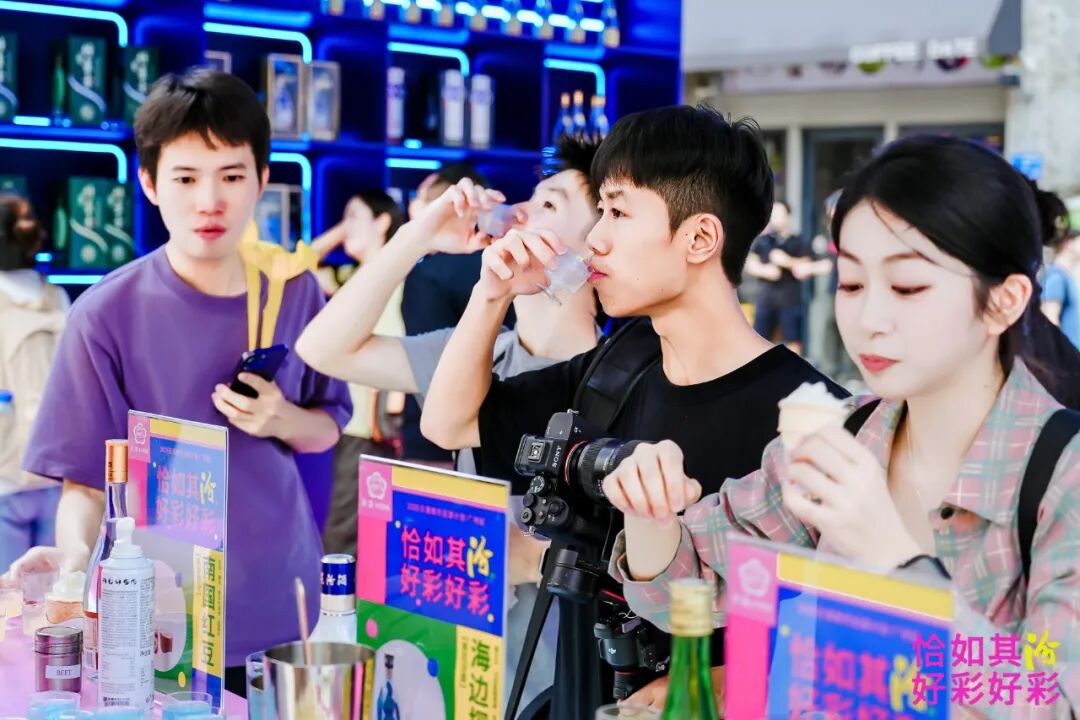 以青花汾酒為基酒的特調(diào)雞尾酒吧臺(tái)前,更是人頭攢動(dòng),年輕人手捧“海邊探戈”“南國(guó)紅豆”等特調(diào)創(chuàng)意飲品,在微醺中暢聊,構(gòu)成了永慶坊的生動(dòng)一景,讓行業(yè)感慨,汾酒正在“沉浸式、體驗(yàn)式”圈粉年輕世代。