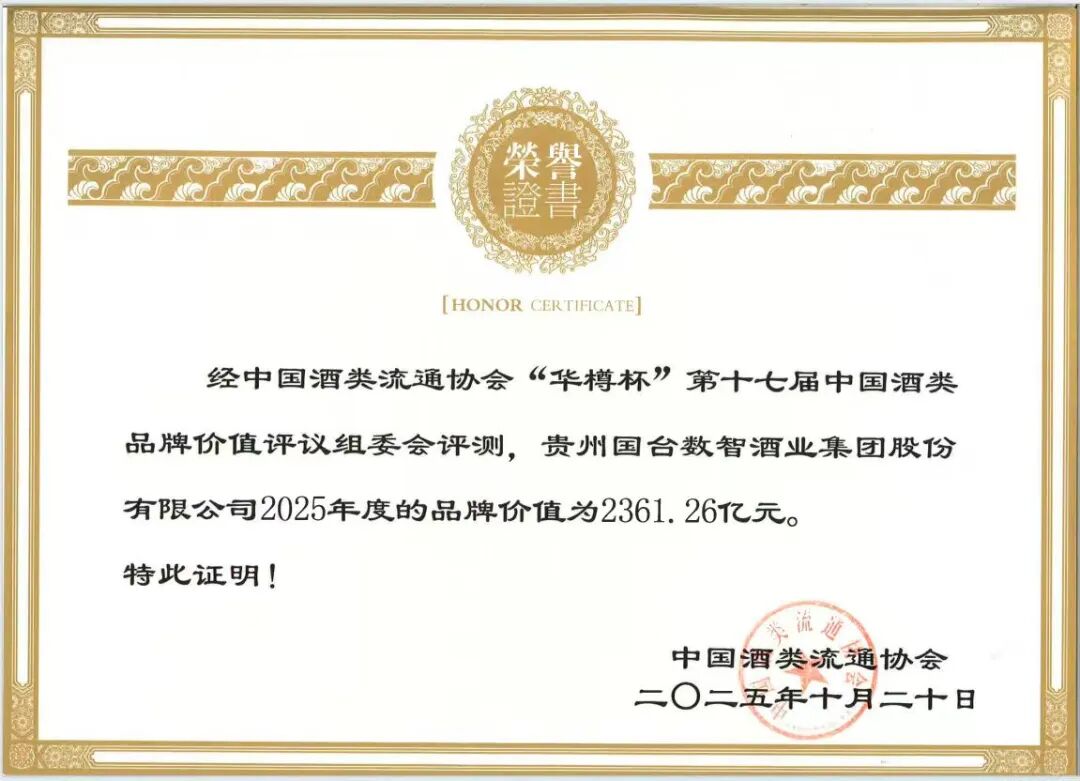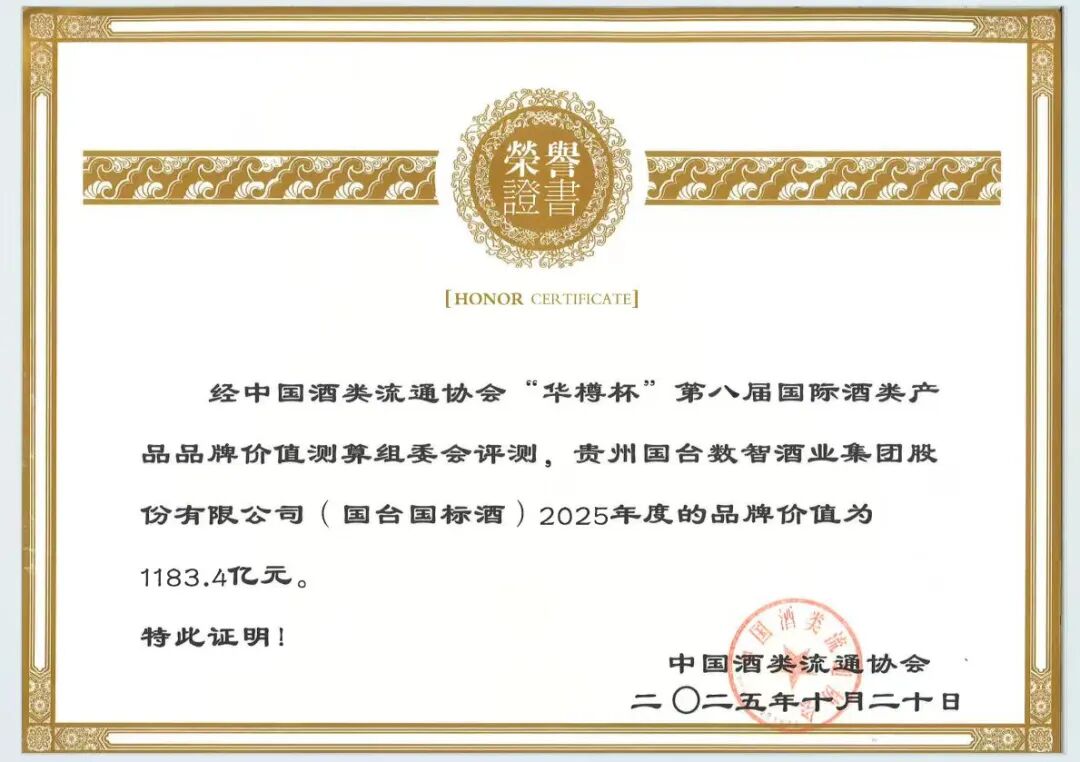 10月20日,華樽杯第十七屆《2025年中國酒類品牌價值200研究報告》在深圳正式發(fā)布。報告顯示,國臺酒2025年度品牌價值達2361.26億元,榮獲中國白酒第九名、貴州省白酒第三名。國臺酒核心大單品國臺國標酒2025年度品牌價值突破1183.4億元,躋身全球酒類產(chǎn)品第二十名、中國白酒第九名。