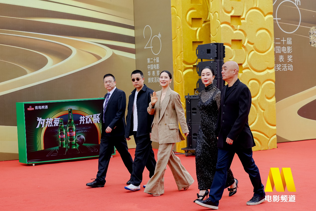 百米紅毯兩側(cè),青島啤酒logo燈箱與青島啤酒手舉牌交相輝映,甚至有嘉賓舉著青島啤酒就走上紅毯,讓星光熠熠的華表獎紅毯,多了煙火氣的“松弛感”。而主持人更是現(xiàn)場“安利”紅毯嘉賓,來青島團建“喝青島啤酒”。