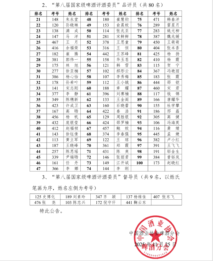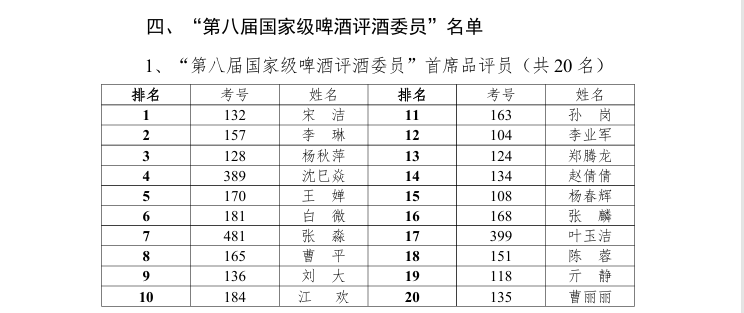 本次考評(píng)不僅為行業(yè)選拔出新一屆國家級(jí)啤酒感官人才隊(duì)伍,也進(jìn)一步推動(dòng)了啤酒行業(yè)感官評(píng)價(jià)體系的完善與專業(yè)水平提升。詳細(xì)名單如下: